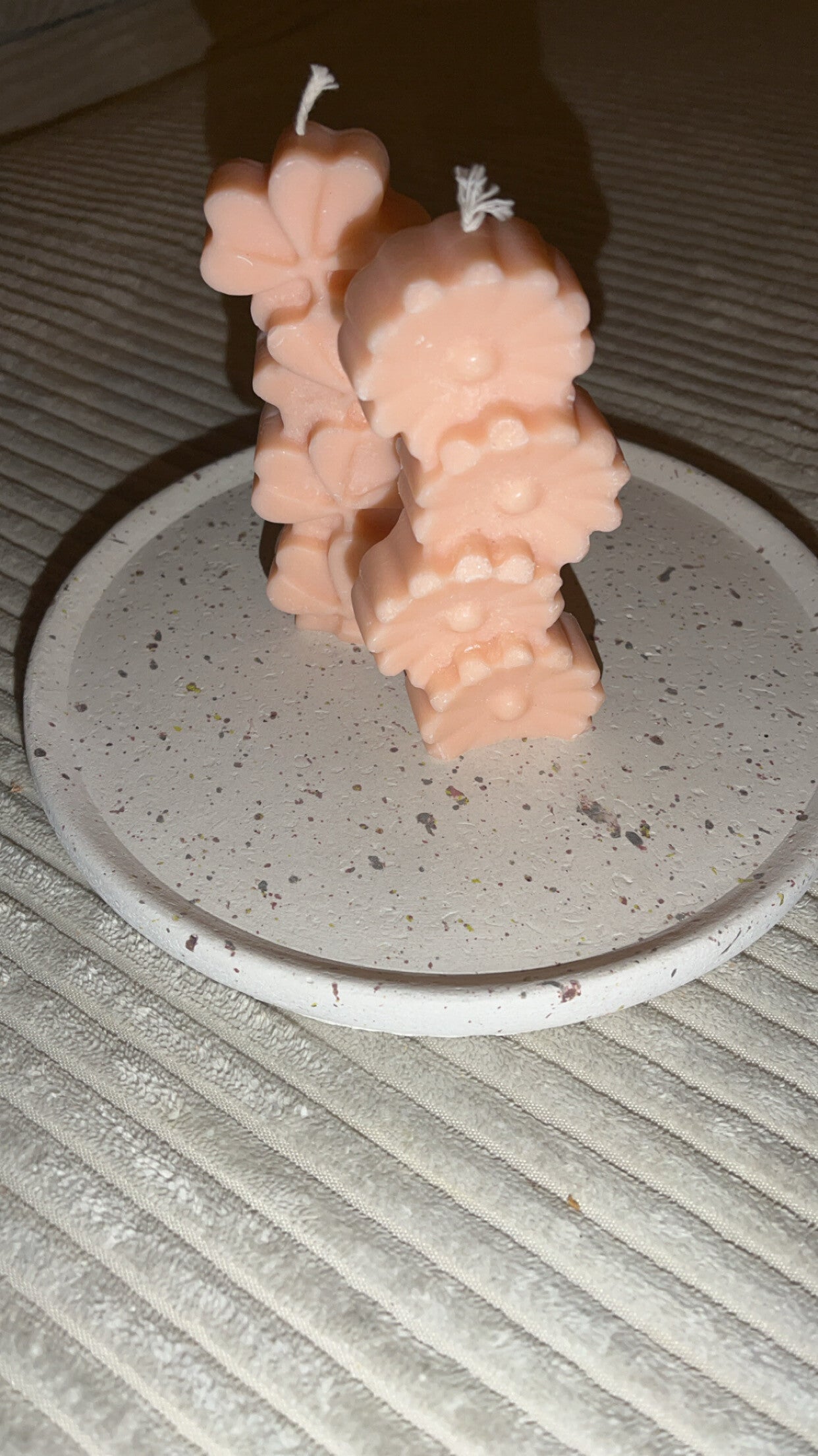 Quand la lumière rencontre la nature : nos bougies en forme de colonne de fleurs créent une ambiance florale unique.